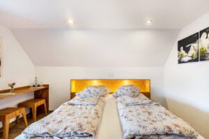 Ein gemütliches Schlafzimmer und TV lädt zum Ausruhen und Wohlfühlen ein. Das Badezimmer mit Dusche und WC bietet Ihnen viel Raum für entspannte Momente. Preis pro Person und Nacht inkl. Frühstück zzgl. Kurtaxe ab EUR 72,00